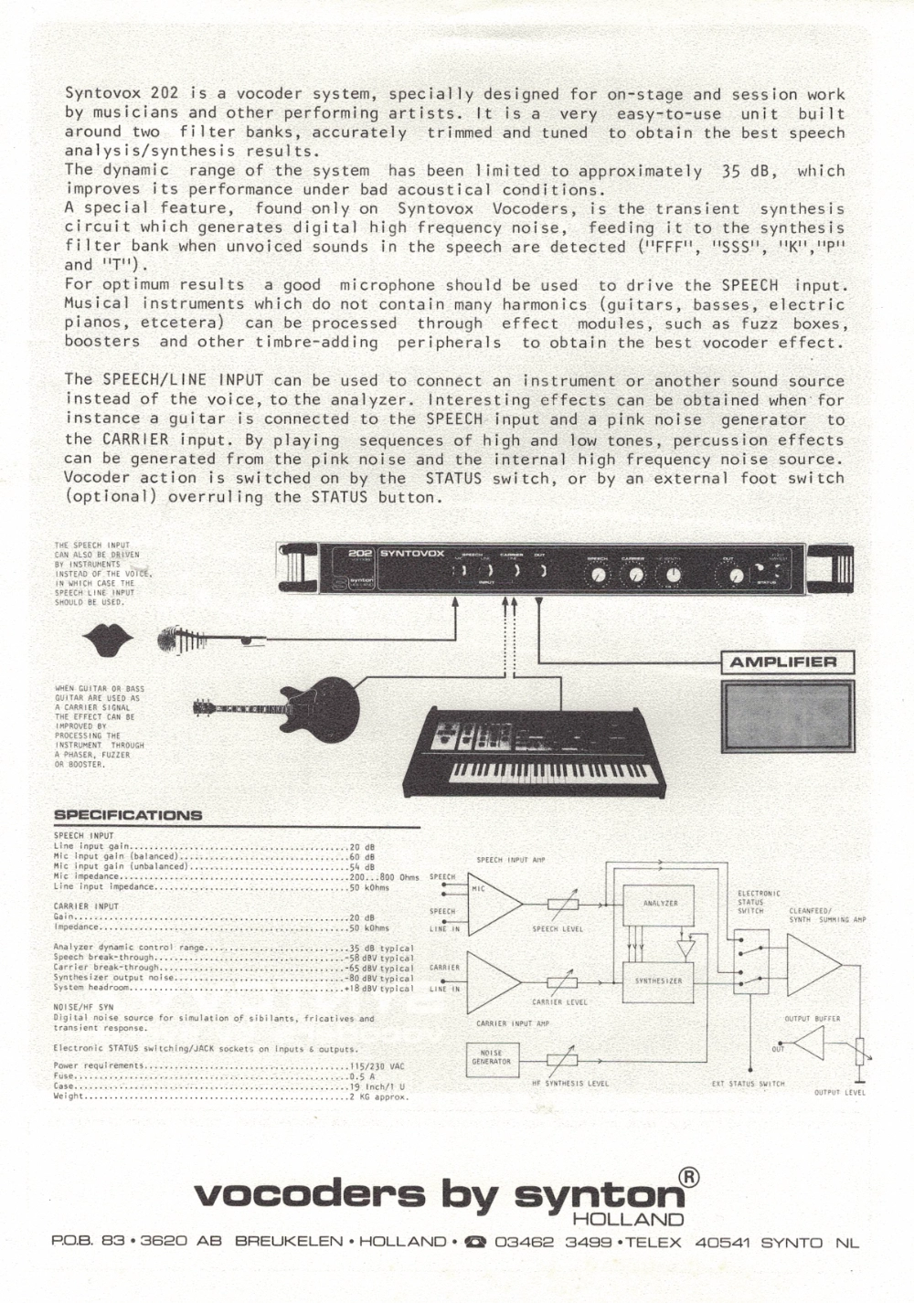 The Syntovox 202 was Synton’s simplest model. Aimed at guitarists, all inputs & outputs (except power) are on the front panel.