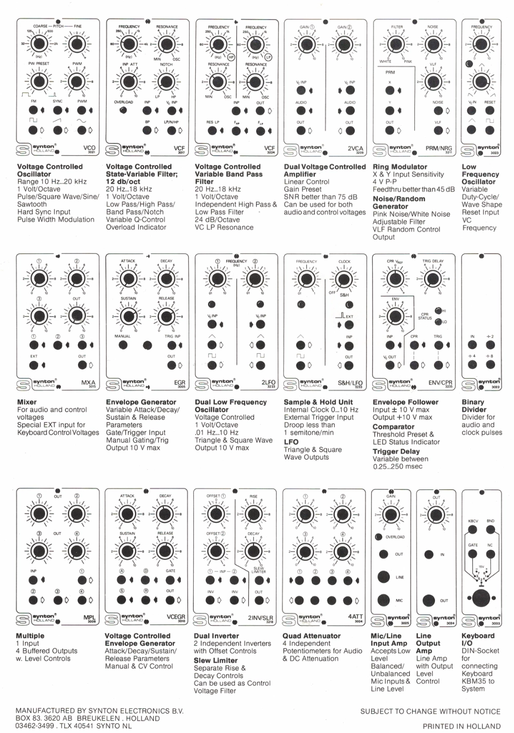 modules ( not listed) like PPG, DMX , 3117 24dB LP eo were