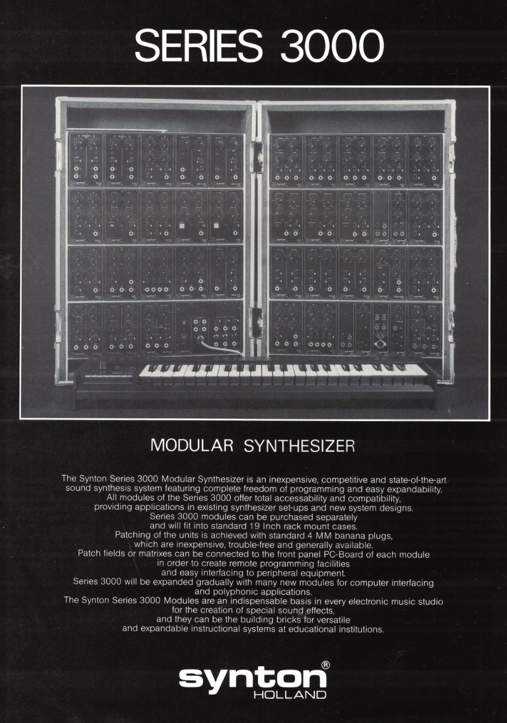 Standard 3000 system in flite case with keyboard and a touchplate of Bob Moog. Synton was distributor of Bob Moog products and Moog was distributor of Synton products